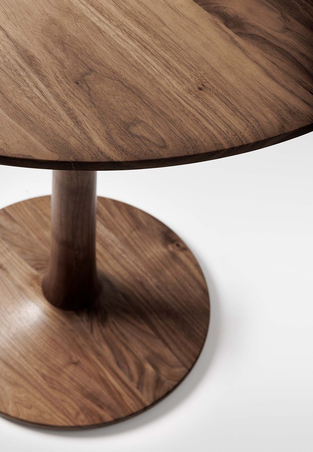 Wie eine stille Bewegung im Raum erhebt sich TURNTABLE HIGH, schwebend leicht und doch geerdet im Massivholz. Der stabile Mittelfuß trägt die runde Platte mit spielerischer Eleganz, als würde sie für einen Moment der Schwerkraft entkommen. Der Tisch lädt ein zum Innehalten, zur Begegnung, zum Schweifen lassen von Gedanken – ein Ort, an dem Gespräche entstehen, sich entfalten und weiterentwickeln können. Ein Möbel, das nicht laut sein muss, um präsent zu sein. TURNTABLE HIGH erzählt von Balance, von Handwerk und der Schönheit des Einfachen. Ob als Stehtisch oder als skulpturales Statement im Raum – TURNTABLE HIGH ist ein stiller Dialog zwischen Funktion und Form, Bewegung und Ruhe.